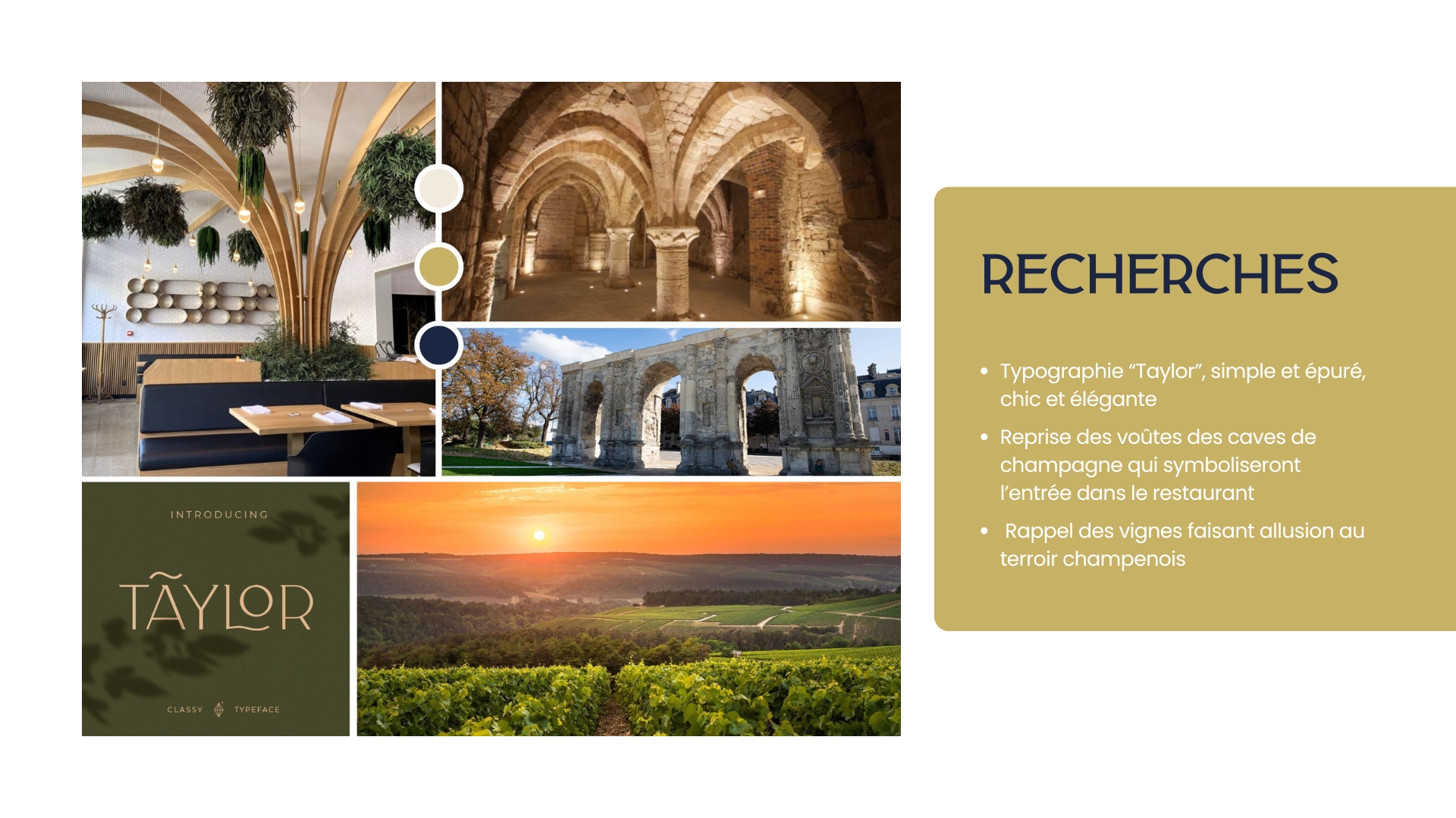 J’ai également apporté une touche Champenoise au logo grâce au rappel des vignes mais aussi aux voutes des caves de champagne typoques de cette région.